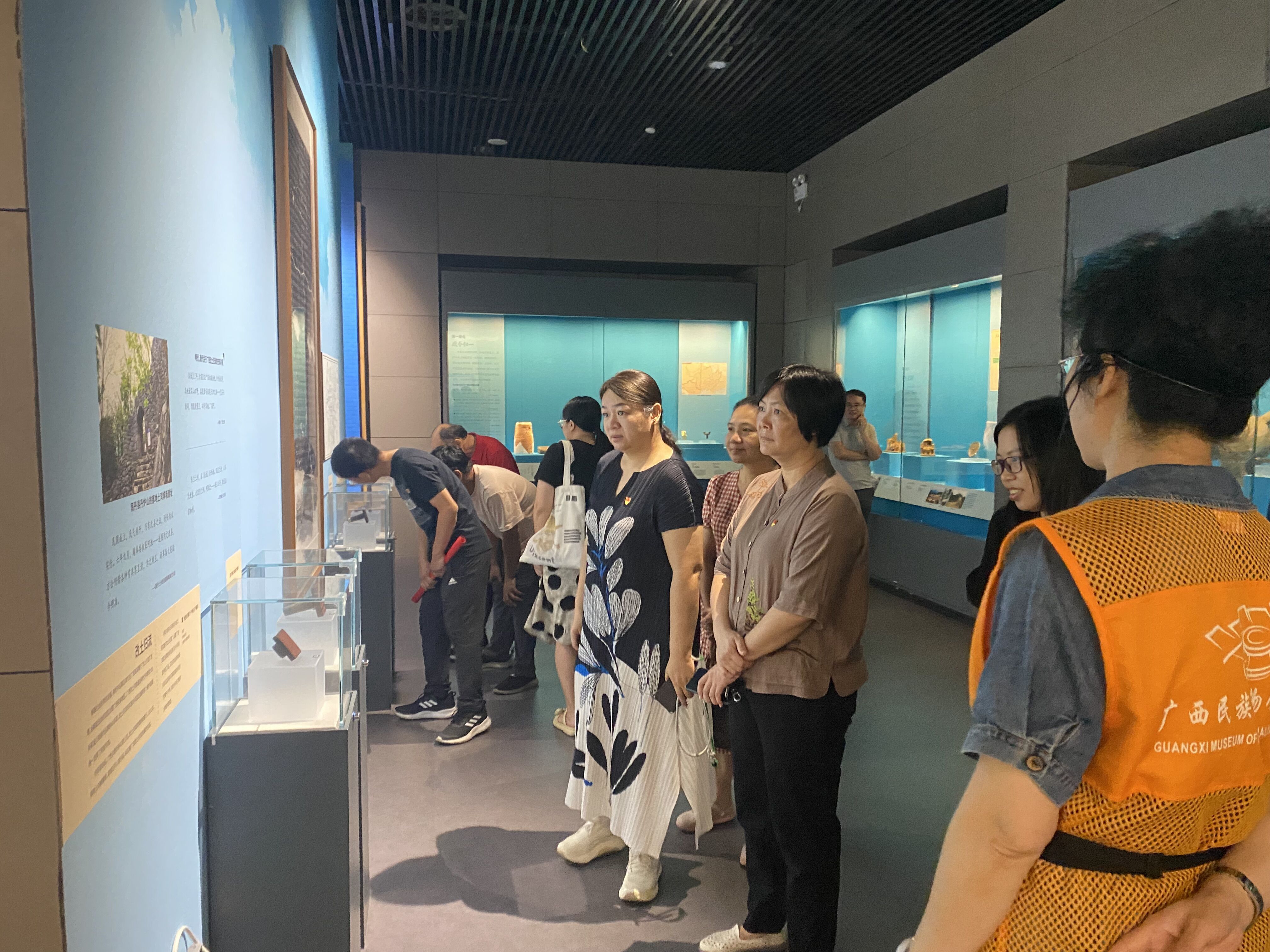 广西民族博物馆的铸牢中华民族共同体意识历史文化展包括“共辟辽阔疆域”、“共书悠久历史”、“共创灿烂文化”、“共育伟大民族精神”四大部分内容。通过参观馆内珍贵的文物、文献资料及历史照片,大家深入了解到了广西源远流长的各民族团结的历史,以及创造的弥足珍贵的文化财富,领略了各民族适应自然、开放包容的生产生活智慧,既有物质形态的多元,更有精神内涵的一体。