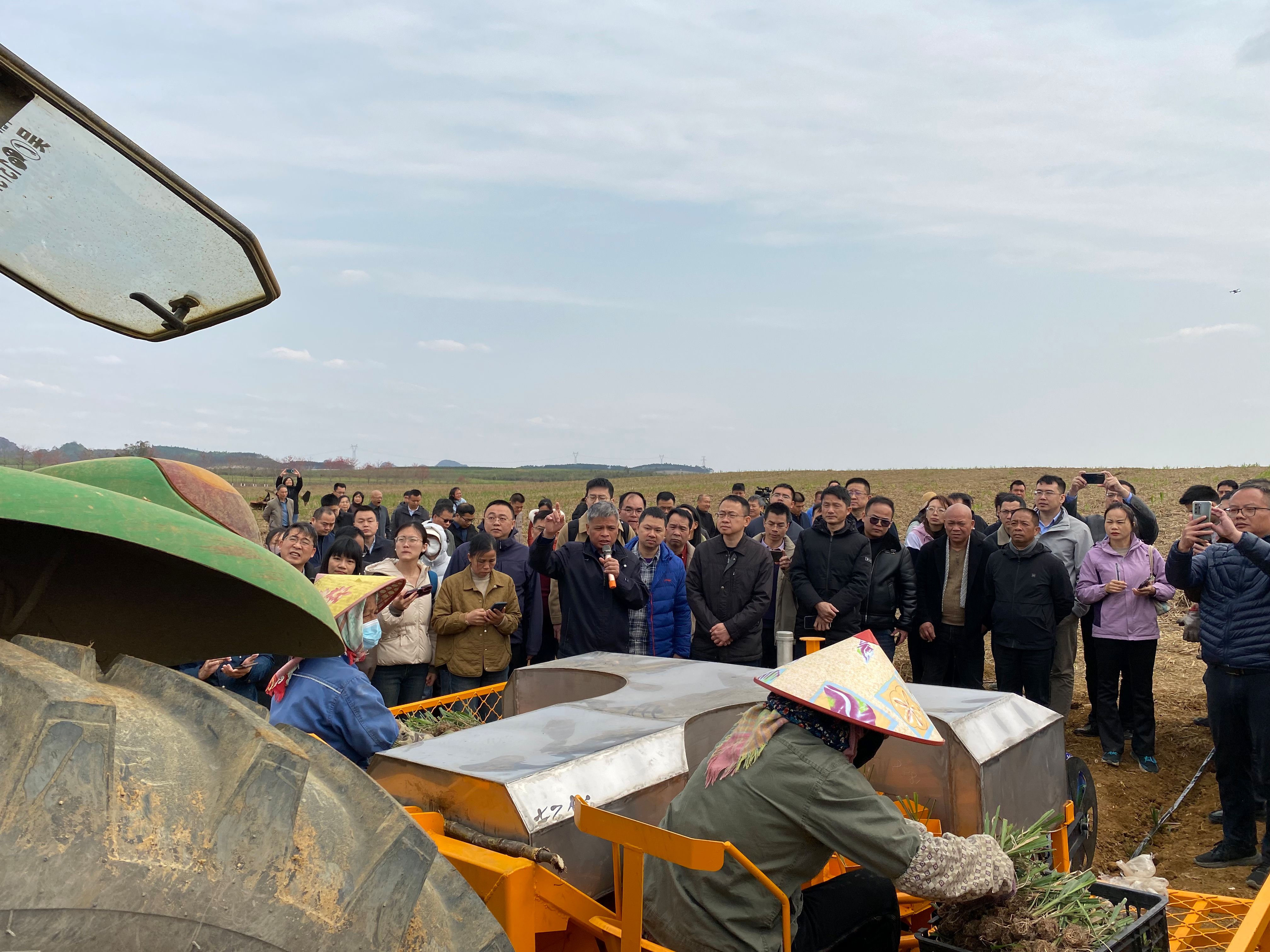 2025年3月18日,由广西农业农村厅主办,扶绥县人民政府承办的“2025年广西甘蔗机械化春种春管现场会”在我院位于农科新城的“广西农业机械化产学研推示范基地”召开。此次现场会以“甘蔗春种春管智慧农机+”为主题,集中展示了智能化、无人化农机设备在甘蔗春种春管中的创新应用,为推动甘蔗产业现代化发展注入强劲科技动能。学院党委书记、现代产业学院常务副院长卢婵江、现代产业学院办公室主任杨望等20名师生代表到现场观摩。