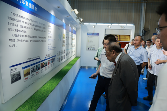 7月3日下午至7月4日上午,与会专家一行在先后调研柳州市产业园的广西汽车集团、东风柳汽、上汽通用五菱等新能源汽车龙头企业后,在柳州市莲花山庄华池多功能厅与柳州市政府、柳州新能源汽车相关企业代表召开产业现场会。柳州市委常委、副市长潘展东率领柳州市园区办、发改委、工信局、科技局、财政局、投促局、柳南区及柳东区管委会、柳州市产业集团,以及上通五、东风柳汽、广汽集团、一汽解放、柳机动力、柳州赛克、国轩电池、轾驱新能源等17家企业代表参加交流并主持座谈会。市园区办主任张金呈首先介绍柳州市新能源汽车产业发展现状,上汽通用五菱、东风柳州汽车、广西汽车集团等多家汽车及零部件企业代表依次介绍。随后,与会专家和企业代表围绕技术创新、智能驾驶、标准体系、产业出海、生态构建等议题展开讨论。