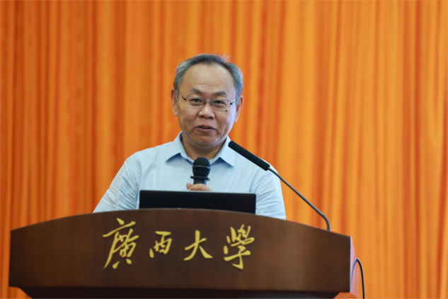 主题论坛部分于7月3日上午采用“线下论坛+线上直播”的方式在广西大学君武馆玉林厅进行,邀请到被誉为“亚洲电动车之父”的中国工程院院士陈清泉,原天津大学国家重点实验室主任尧命发,浙江大学智能汽车研究中心主任潘之杰、精进电动科技总裁余平等10多位全国新能源汽车领域的知名专家,各自分享包括浙江大学、北京航空航天大学、重庆大学、同济大学、吉林大学、香港理工大学、香港科技大学、香港城市大学等高校的最新相关研究成果,通过“盖世汽车”直播方式线上参会的人数达1.6万人。广西大学常委、副校长于文进、工信厅、科技厅等自治区相关职能部门出席论坛开幕式。于文进副校长代表广西大学致开幕辞,介绍广西大学基本情况及近年来的发展,强调高校服务国家战略和地方支柱产业发展的重要意义,希望通过论坛能搭建起广西大学与粤港澳大湾区、全国高校、地方龙头企业之间的交流合作平台,通过积极推动科技成果的充分交流和成果转化,为广西新质生产力的构建以及新能源汽车产业的高质量发展贡献西大力量。
