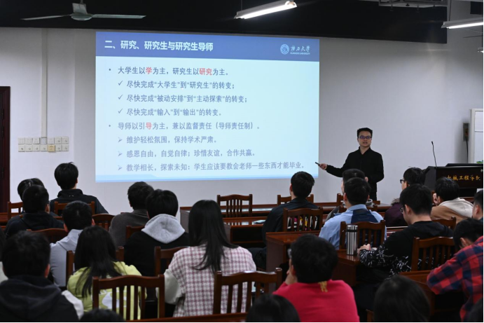 11月20日,由校研究生会主办、学院研究生会承办的第197期“导师有约”系列活动在机械楼329报告厅成功举办。本次活动邀请学院丁江教授作“科研入门的若干体会”主题讲座,旨在助力研究生破解科研入门困惑、顺利开启科研征程。讲座由学院团委书记李华主持,活动现场座无虚席,气氛热烈。