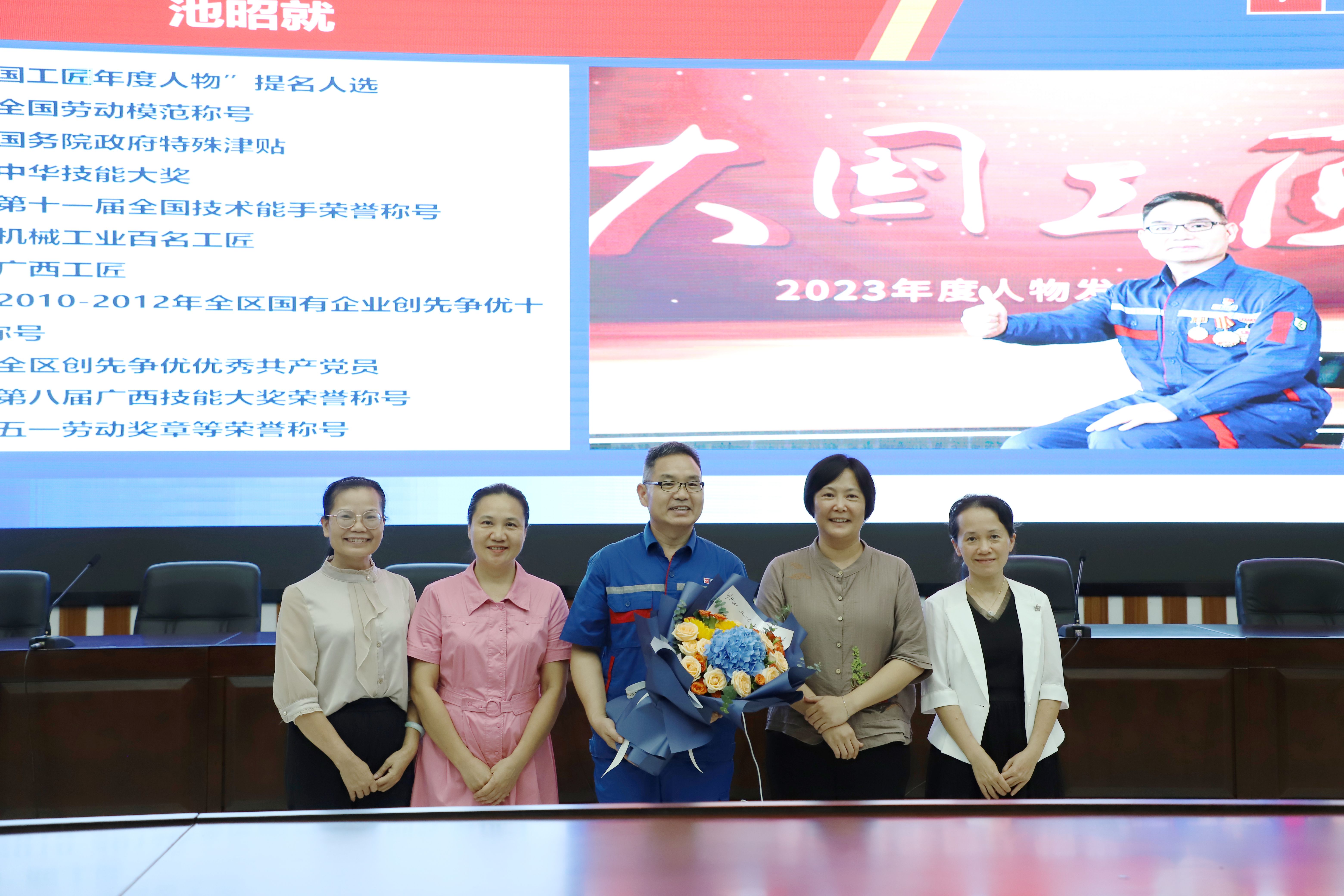 池昭就,全国劳动模范,中华技能大奖获得者,广西玉柴机器股份有限公司首席技能大师,“2023年度大国工匠”入围人选,2024年大国工匠培育对象,享受国务院政府特殊津贴专家。主要从事模具制造、3D打印和快速制造研究工作。
