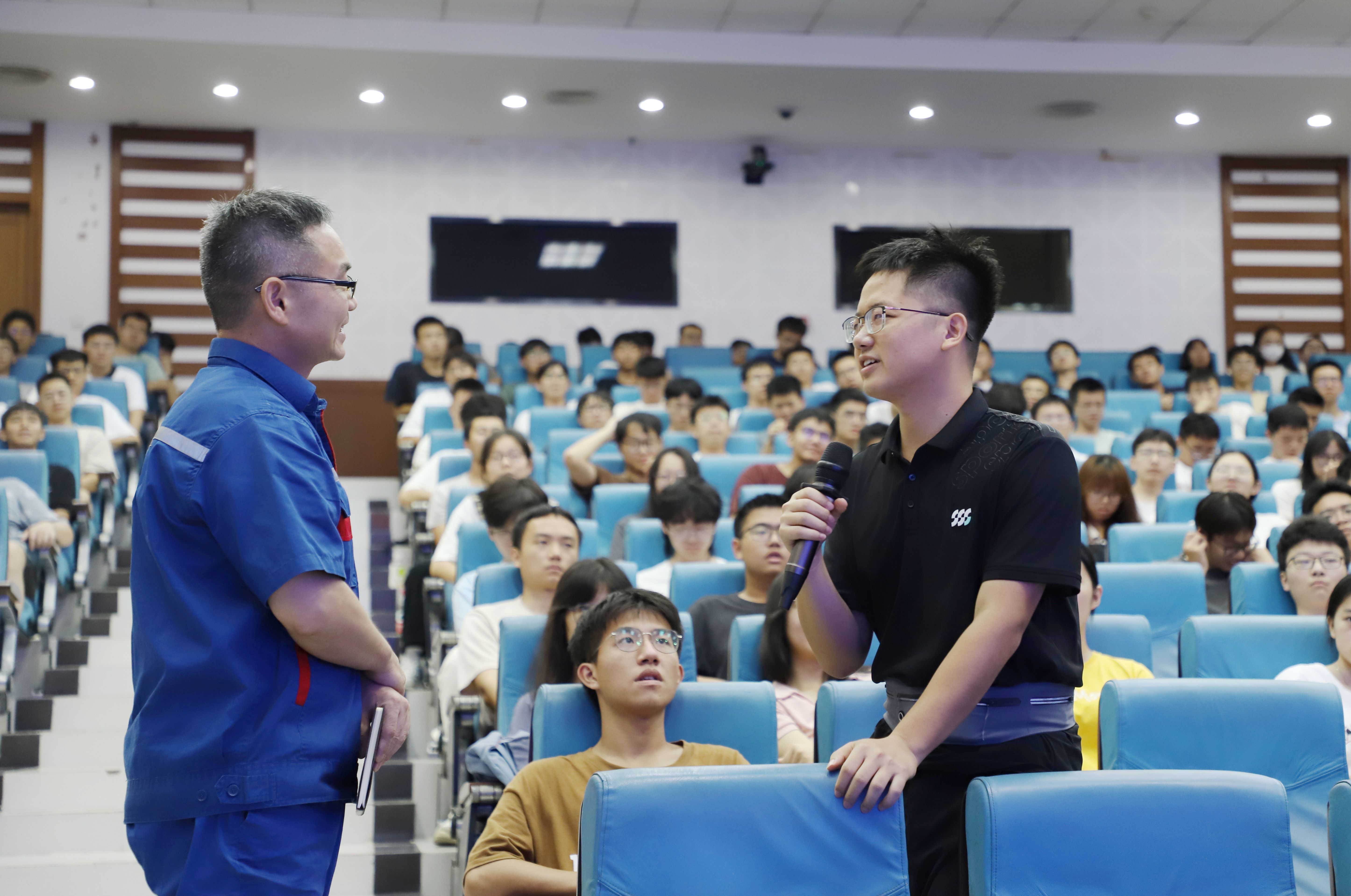 报告中,池昭就结合个人成长成才之路和广西玉柴机器股份有限公司70年的奋斗历程,深刻阐述了劳模精神、劳动精神和工匠精神的丰富内涵,以及坚定不移走中国特色自主创新道路的必要性和重要性。他不仅讲述了自主创新的重要性,还特别强调了“从中国制造到中国创造”的转变,激发了学生的民族自豪感和爱国情怀。他深入剖析了工匠精神的内涵,即精益求精、追求卓越、专注执着、勇于创新等品质,强调这些精神不仅是职业技能的提升要求,更是职业道德和职业精神的体现,他鼓励同学们在专业技能学习的同时,注重培养自身的职业素养和道德品质,成为既有过硬本领又有高尚情操的“能工巧匠”。此外,他还与现场师生互动交流,答疑解惑。