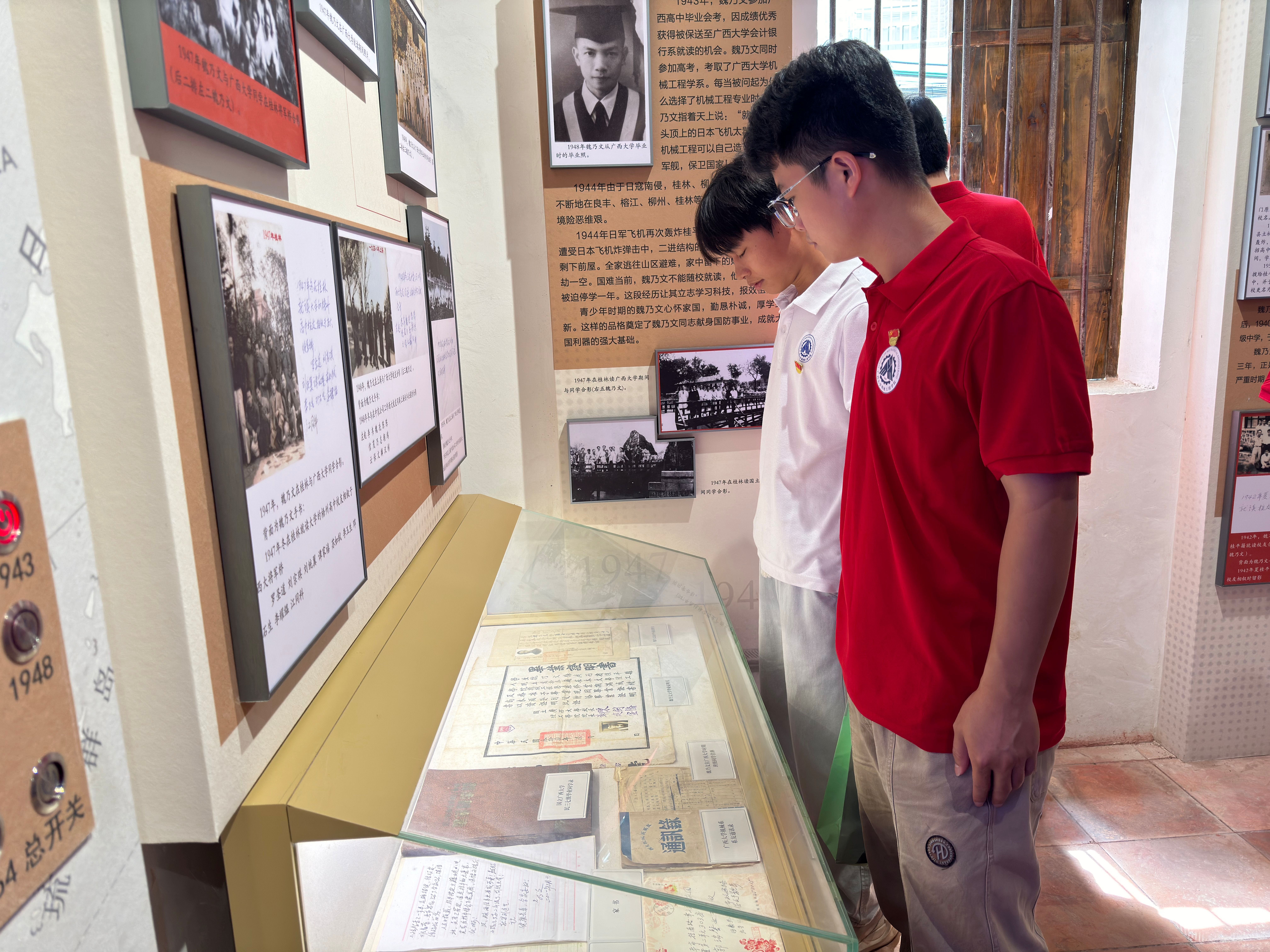 在桂平城西街的魏乃文故居里,通过聆听讲解员对魏乃文同志生平事迹的介绍,参观一件件珍贵的历史文物以及丰富的视听资料,党员同志们被魏乃文同志“干惊天动地事,做隐姓埋名人”的先进事迹深深打动,看到他温和从容的音容笑貌和放弃保送机会主动报考机械专业的坚定眼神;感受到他历尽挫折打造大国重器的无惧无畏和执着坚毅;体会到他不惜隐姓埋名30年献身国防的深厚情怀以及淡泊名利无私奉献的使命担当……参观学习后,党员同志们纷纷表示要学习和传承魏乃文校友爱党爱国的崇高品质和自主创新的科学精神,学好知识、练好本领、积极工作,决心为振兴广西工业作出自己的贡献。