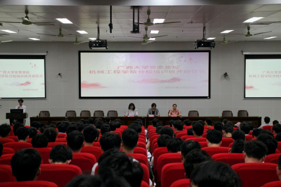 4月29日下午,广西大学党委党校机械工程学院分校2025年上半年党员培训班开班仪式在六教一阶举行。学院党委书记卢婵江,学院党委副书记、纪委书记黄路明,培训班班主任彭程程,以及各班团支部、预备党员、发展对象、入党积极分子等共同参加了本次开班仪式。