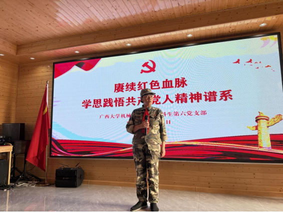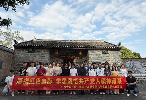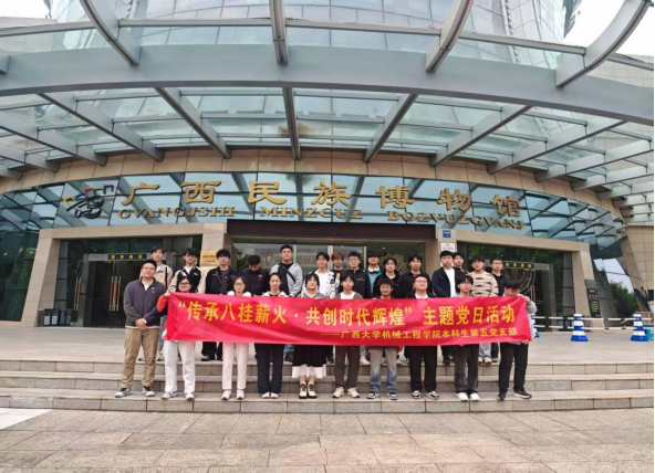 为传承和弘扬以伟大建党精神为源头的中国共产党人的精神谱系,推动红色血脉在新时代焕发新的生机与活力,引导青年党员在红色革命故事中感悟初心使命,在红色发展历程中凝聚奋进力量,近日,机械工程学院本科生第六党支部、本科生第五党支部分别在支部书记宋丹婷、梁炜昊的带领下,开展学思践悟中国共产党人精神谱系及铸牢中华民族共同体意识主题党日活动,前往广西规划馆、林景云故居、广西民族博物馆进行现场学习实践。