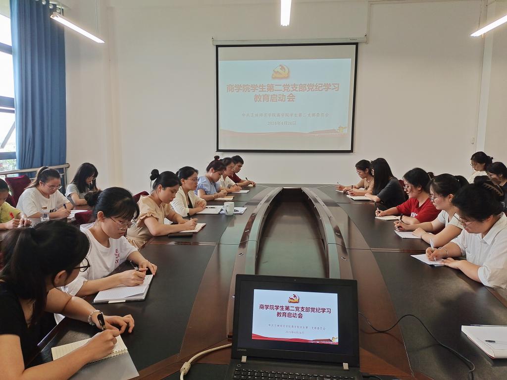 2024年4月24日,bv伟德国际1946学生第二党支部于我校东校区清源楼A221召开党纪学习教育启动会。此次启动会特邀支部联系领导段艳同志主讲,由支部书记叶丽娟同志主持。