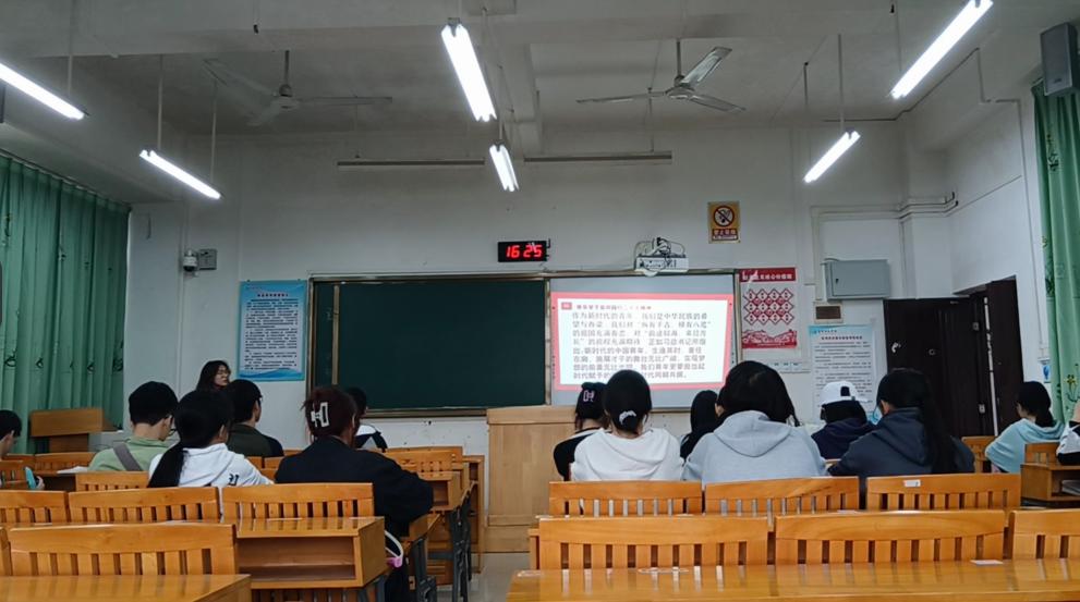 班会开始,团支书区宇菲通过PPT的讲述先带领同学们回顾党的二十大的精神内涵,通过提问同学2022的三大事件开始,到后来讲解同学们应该如何践行党的二十大精神,让同学们再一次学习到二十大的精神内涵。接着宣传委员梁葳健,先带领同学们观看视频,回顾了疫情期间中华民族展现出来的“爱国、团结、奋斗、科学、互助”精神。又通过观看视频与PPT的讲解,回顾了三年里国家与时俱进的政策以及取得的成效。班会最后,宣传委员梁葳健带领同学回顾过去,让同学们对自己在这个新的起点应该做什么,怎么做。以及在新的学期向同学们送出美好的祝愿。