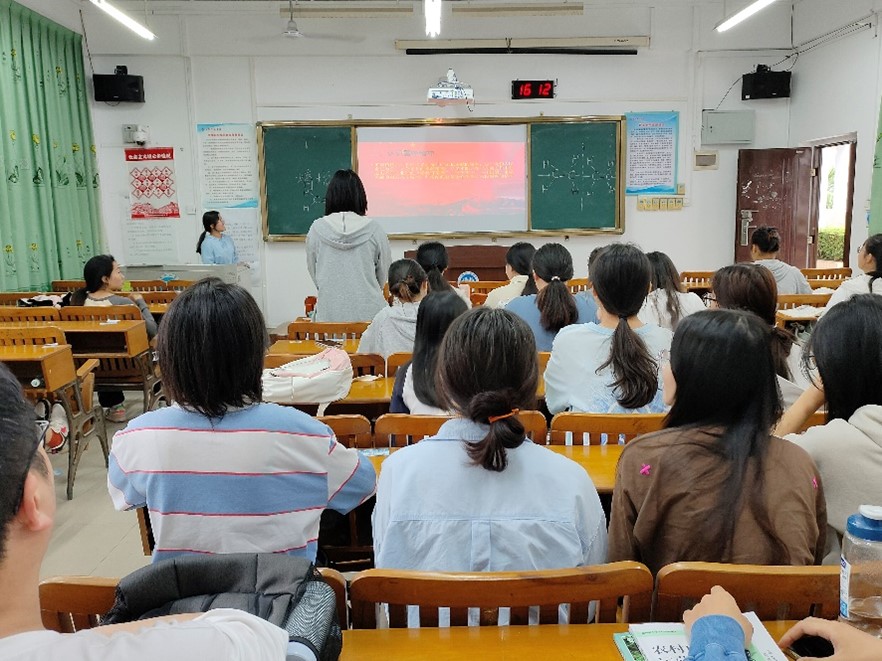 会上,团支书张妹燕以ppt的形式向学生们展示讲解了党的二十大的主题及内容和党的二十大主要精神概括,接着由随机抽选两名学生分享本次学习的收获与感想,最后团支书做出班会总结。