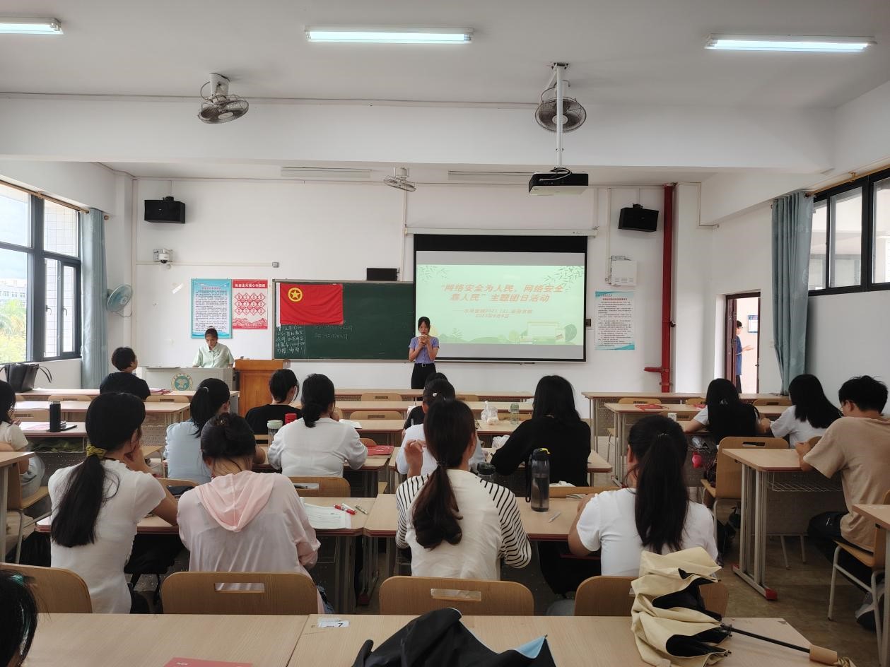 会议伊始,团支书给我们讲解什么是网络安全,普及网络安全意识,让同学意识要正确使用网络,增强自我保护意识。面对网络安全隐患要提高警惕,不轻信馅饼而泄露隐私,坚守底线思维,维护国家和个人安全利益,不随意发表不正确的言论。接下来团支书给我们展示了在现实生活中应该如何安全上网,不随意泄露个人信息,不下载山寨软件等等,坚持个人文明、健康上网。最后,班级同学代表积极分享心得体会,通过分享一些生活案例,进一步增强了同学们的网络安全意识与自我保护意识。