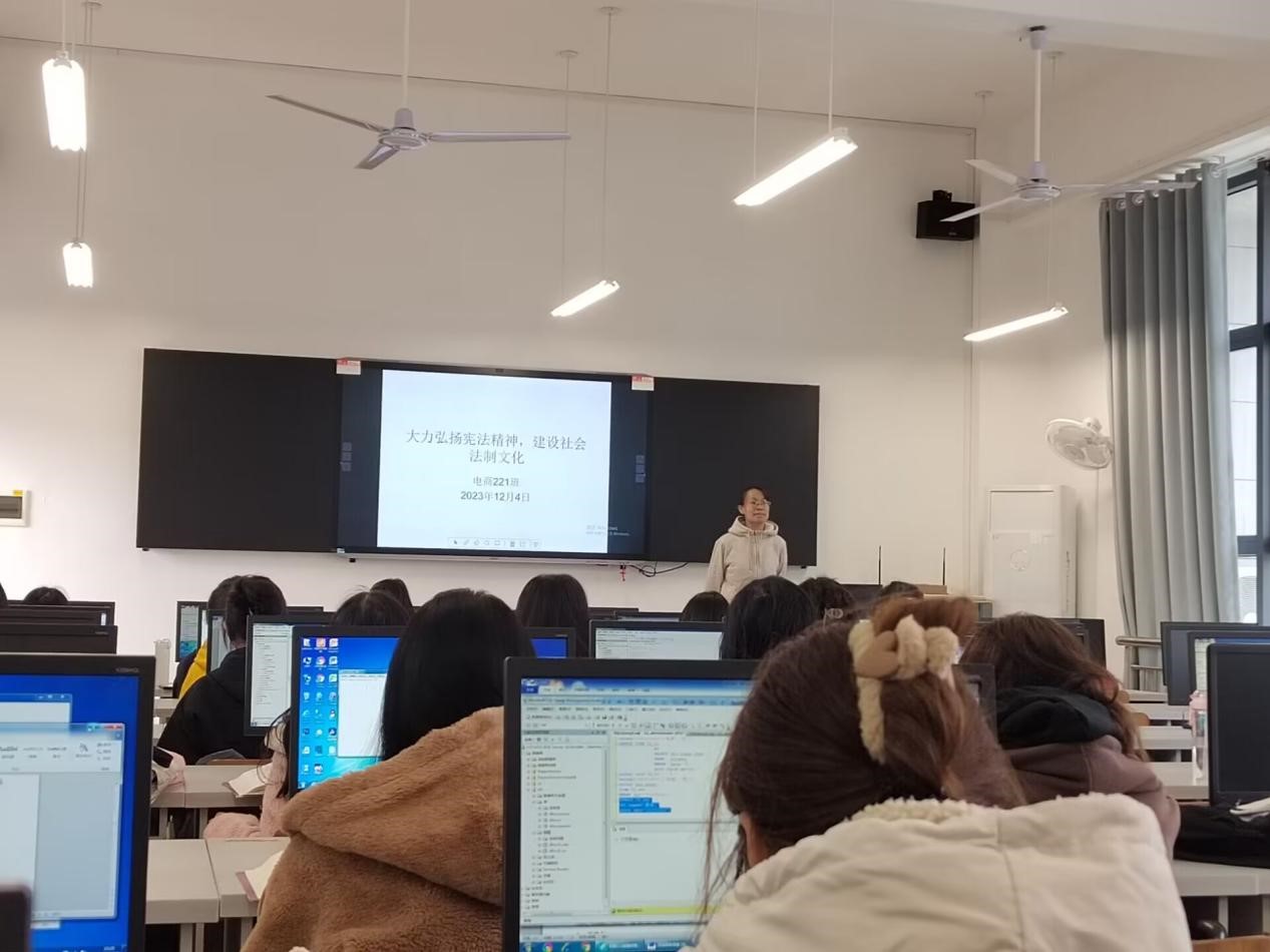 为弘扬宪法精神,争做宪法的守护者,为共同建设一个法治国家而努力,2023年12月4日,电商221班于伟德国际1946手机东校区清源楼501开展“大力弘扬宪法精神,建设社会法治文化”主题活动。电商221班全体同学参加此次会议,会议由该班班主任梁燕红主持。
