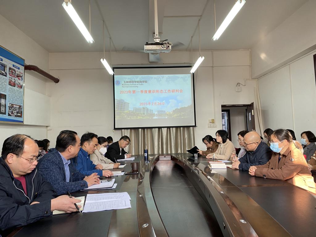 2月26日,bv伟德国际1946于我校东校区博学楼1-407会议室召开2023年第一季度意识形态工作研判会。本次会议由党委书记管金标主持,我院全体教职工参加此次会议。