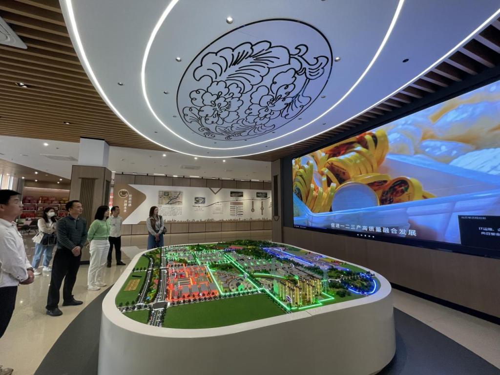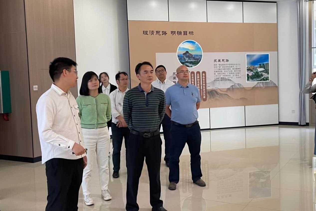 牛腩粉产业园基地工作人员向许进杰院长一行介绍牛腩粉基地建设及运营情况
