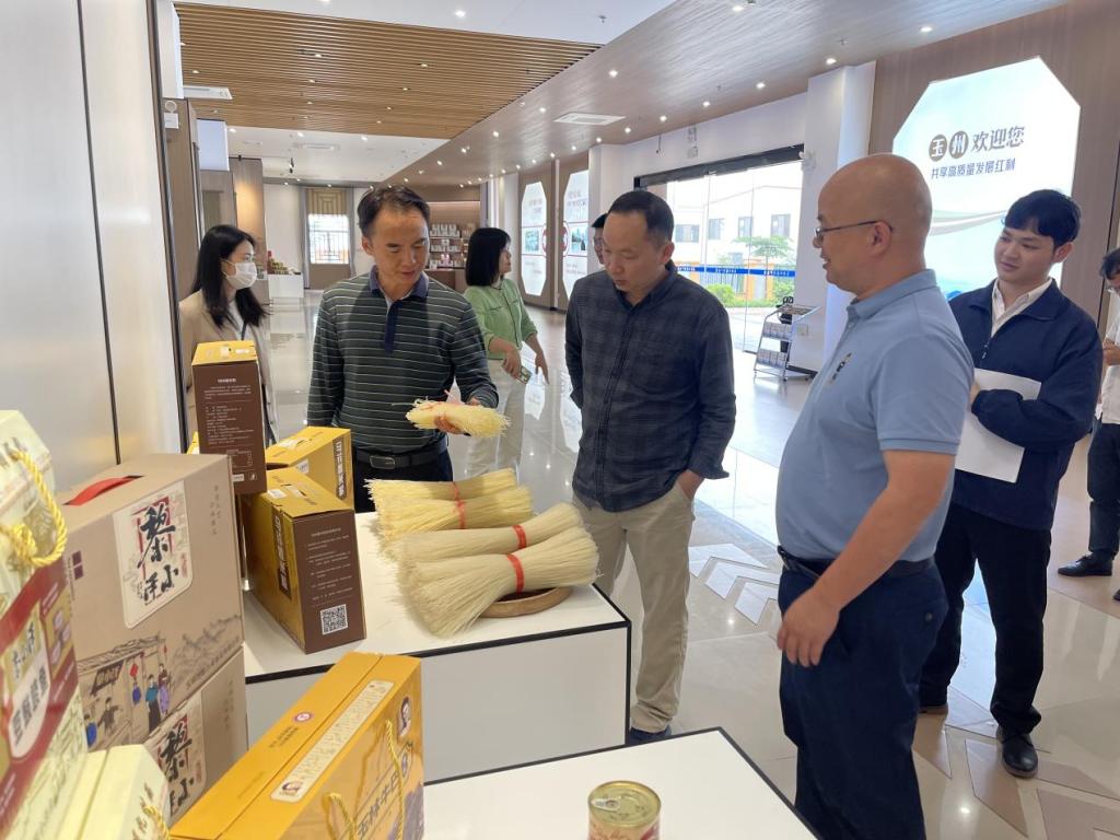 许进杰院长向基地工作人员了解“玉林靓货”品牌运营情况