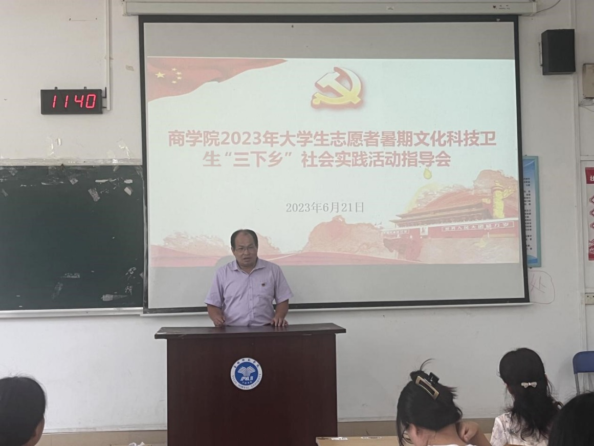 为推动我校2023年暑期社会实践活动顺利开展,落实社会实践工作有序进行,6月21日,bv伟德国际1946于我校东校区博学楼1-102教室开展bv伟德国际19462023年大学生志愿者暑期文化科技卫生“三下乡”社会实践启动仪式暨社会实践活动指导会,会议由bv伟德国际1946党委副书记兼副院长龙强主持,团委书记李晓丽以及bv伟德国际1946各班团支书参加本次会议。