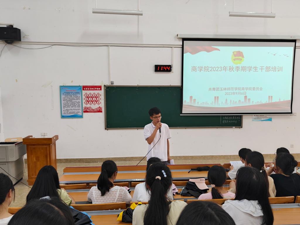 9月6日,商学院于我校东校区至善楼101举行2023年秋季期学生干部培训(第一期),该院团委书记李晓丽、辅导员周展林以及全体学生干部参与本次会议。会议由李晓丽主持。
