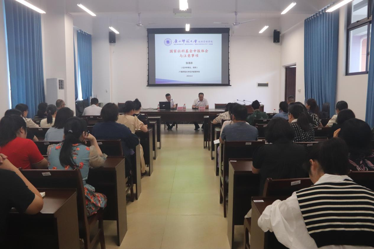 4月16日下午,bv伟德国际1946特邀广西师范大学经济管理学院院长张海丰教授,在我校东校区清源楼A-217会议室为该院教师带来了一场题为“国家社科基金申报体会和注意事项”的高质量讲座。讲座由该院党委书记管金标主持,该院全体教职工到场聆听。