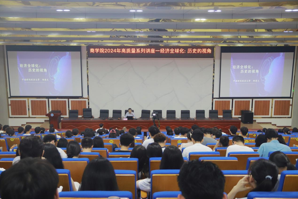 4月28日晚上,邹进文教授在我校新民楼D101会议室为该院师生主讲以“经济全球化:历史的视角”以及“后发优势与后发劣势:基于器物、制度与文化的考察”为主题的高质量讲座。该院领导班子、经济学教研室老师、经济学专业所有学生近400人到场聆听。第一场讲座聚焦于经济全球化的历史进程。邹教授带领听众穿越时空,回溯了从15世纪至20世纪的三次经济全球化浪潮。他详细分析了每次全球化的经济指导思想,从重商主义到自由贸易理论,再到新自由主义的演变。对于当前全球化趋势下中国所扮演的角色和未来方向,邹教授提出了深刻的见解,引发了在场师生的深思。在第二场讲座中,邹教授探讨了后发国家在现代化道路上的优势与劣势。通过对器物、制度和文化三个层面的考察,他阐述了后发国家如何实现现代化,并强调了战略选择的重要性以及先发国家对后发国家现代化成功的影响。